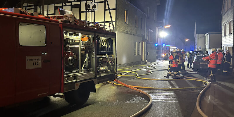 Zu einem vermeintliche Brandeinsatz wurden am späten Samstag Abend die Einheiten aus Nuttlar, Ostwig und Velmede-Bestwig nach Nuttlar gerufen. Im Keller eines Gebäudes an der Rüthener Straße war es aus bisher ungeklärten Gründen zu einer Explosion und Verpuffung gekommen. Zu einen Brand kam es nicht, aber durch den Druck der Verpuffung wurde in dem Gebäude eine Kellerwand und das Garagentor beschädigt. Dabei erlitt eine Person schwere Verletzungen. Die Person wurde vor Ort vom Rettungsdienst behandelt, anschließend ins Krankenhaus transportiert und von dort aus mit einem Hubschrauber weiter in eine Spezialklinik für Brandverletzungen geflogen. Eine weitere Person aus dem Gebäude wurde leicht verletzt und vom Rettungsdienst versorgt. Weitere Anwohner des Gebäudes wurden vor Ort vom Rettungsdienst und der Feuerwehr betreut und kamen vorerst bei Verwandten und Bekannten unter.