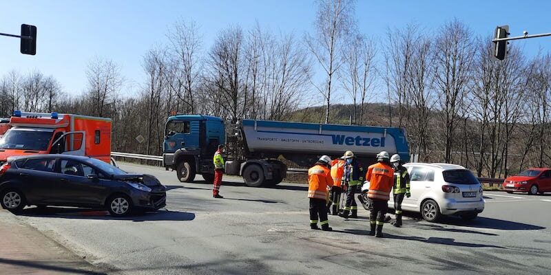 Der Löschzug Velmede-Bestwig wurde zu einem Verkehrsunfall an der Kreuzung der Autobahnauffahrt in Velmede alarmiert. Bei Eintreffen der Einsatzkräfte waren die beiden verletzten Personen bereits vom Rettungsdienst versorgt und wurden im RTW behandelt. Die auslaufenden Betriebsstoffe der PKW wurden abgestreift und die beiden verunfallten PKW wurden auf den Seitenstraßen geschoben. Anschließend wurde die Kreuzung gereinigt, damit der Verkehrt wieder rollen konnte. Die Feuerwehr rückte dann auch wieder ein.