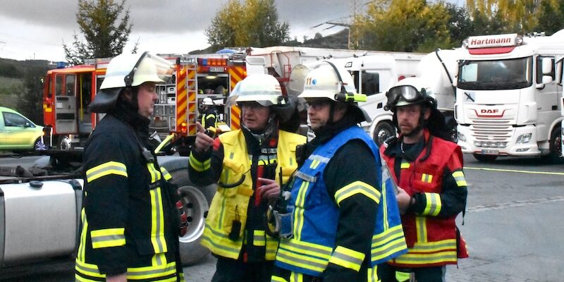 Ein besonderer Dank ging an die Spedition Hartmann, die nicht nur ihr Gelände zur Verfügung stellte, sondern auch maßgeblich zum Erfolg der Übung beitrug. Im Anschluss an den Einsatz trafen sich die Feuerwehrkräfte zu einem gemeinsamen Erfahrungsaustausch. Hier wurde nicht nur über den Ablauf der Übung reflektiert, sondern auch die Zusammenarbeit der verschiedenen Einheiten gewürdigt. Die jährliche Einsatzübung „West“ hat einmal mehr gezeigt, wie wichtig und effektiv das Zusammenspiel der Feuerwehr auch über Stadt- und Gemeindegrenze hinweg ist – eine Tradition, die Leben retten kann.