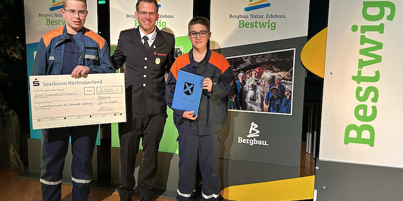 Der 1. Preis, dotiert mit 2.500 €, geht an die Jugendfeuerwehr der Gemeinde Bestwig. So hat die Bewertungskommission ihre Entscheidung begründet: „Die Jugend von heute. Die Retter von Morgen.“, so der Projekttitel der Bewerbung der Jugendfeuerwehr um den Heimatpreis der Gemeinde Bestwig 2022. Wir alle sind uns einig, wie wichtig die Freiwillige Feuerwehr ist. Aus der Jugendabteilung, die 1998 gegründet wurde, sind schon zahlreiche junge Männer und Frauen bei Erreichen der Altersgrenze in die aktive Wehr übergewechselt und tragen so dazu bei, dass der Feuerschutz in der Gemeinde Bestwig sichergestellt werden kann. Aktuell schätzen wir uns glücklich, dass rund 60 Kinder und Jugendliche aus allen Ortsteilen im Alter zwischen 10 und 17 Jahren mit großem Eifer dabei sind und an den alle zwei Wochen stattfindenden gemeinsamen Übungsabenden wichtige Werte wie Spaß, individuelle Vielfalt, Hilfsbereitschaft, Mitbestimmung, Wertschätzung, ehrenamtliches Engagement, Kameradschaft aber auch Inklusion, Toleranz und Interkulturalität vermittelt bekommen.“