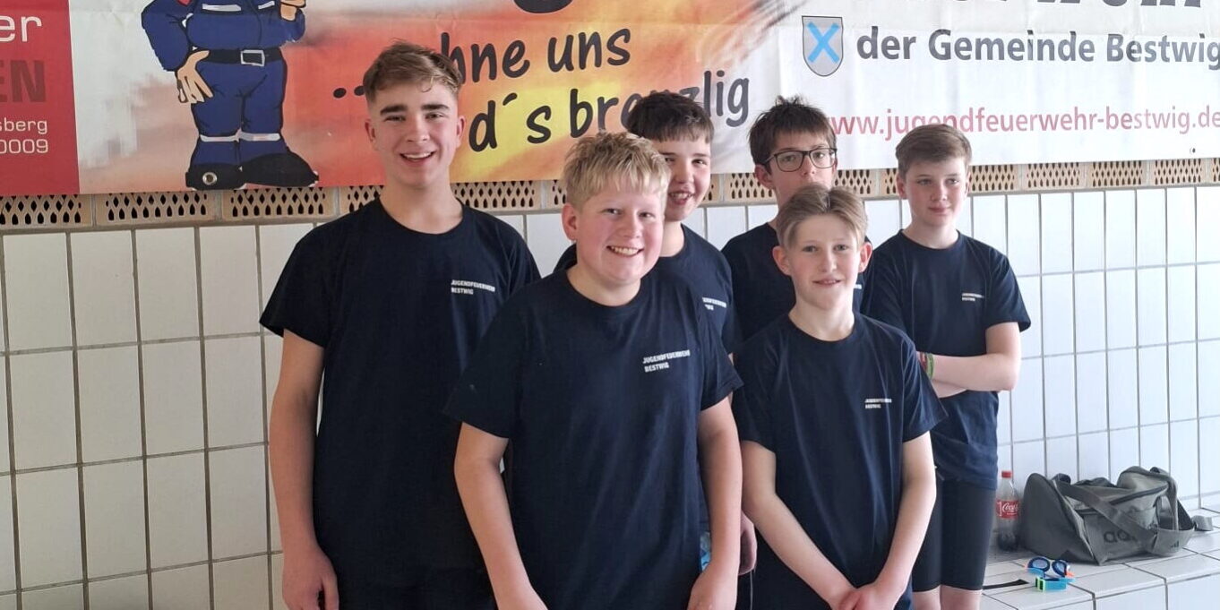 Bestwig – Mit vollem Einsatz sprang die Jugendfeuerwehr Bestwig bei der diesjährigen Gemeindemeisterschaft in der Velmeder Schwimmhalle am Osterberg im Schwimmen ins Wasser. Sechs motivierte Schwimmerinnen und Schwimmer stellten sich den Herausforderungen und zeigten beeindruckende Leistungen in den verschiedenen Disziplinen.